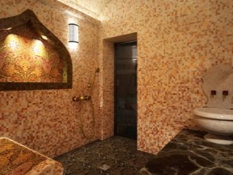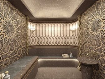 Die Dekoration sollte individuell sein und speziell für ein türkisches Bad - es sollte die volle Farbe des orientalischen Geschmacks vermitteln und die nötige Stimmung für den Besucher schaffen.