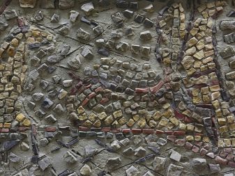 Solche Kreationen werden hauptsächlich aus Smalt (mehrfarbige Glasstücke), künstliche und natürliche Steine geschaffen. Darüber hinaus sind die Materialien, die in den Zusammensetzungen verwendet werden, miteinander kombiniert und erzeugen den Effekt des Spiels von Licht und Schatten. Individuelle Aufträge für ein exklusives Mosaik zur Innenausstattung von Räumen mit nicht traditionellen Materialien sowie Edelsteinen und Metallen sind keine Seltenheit.