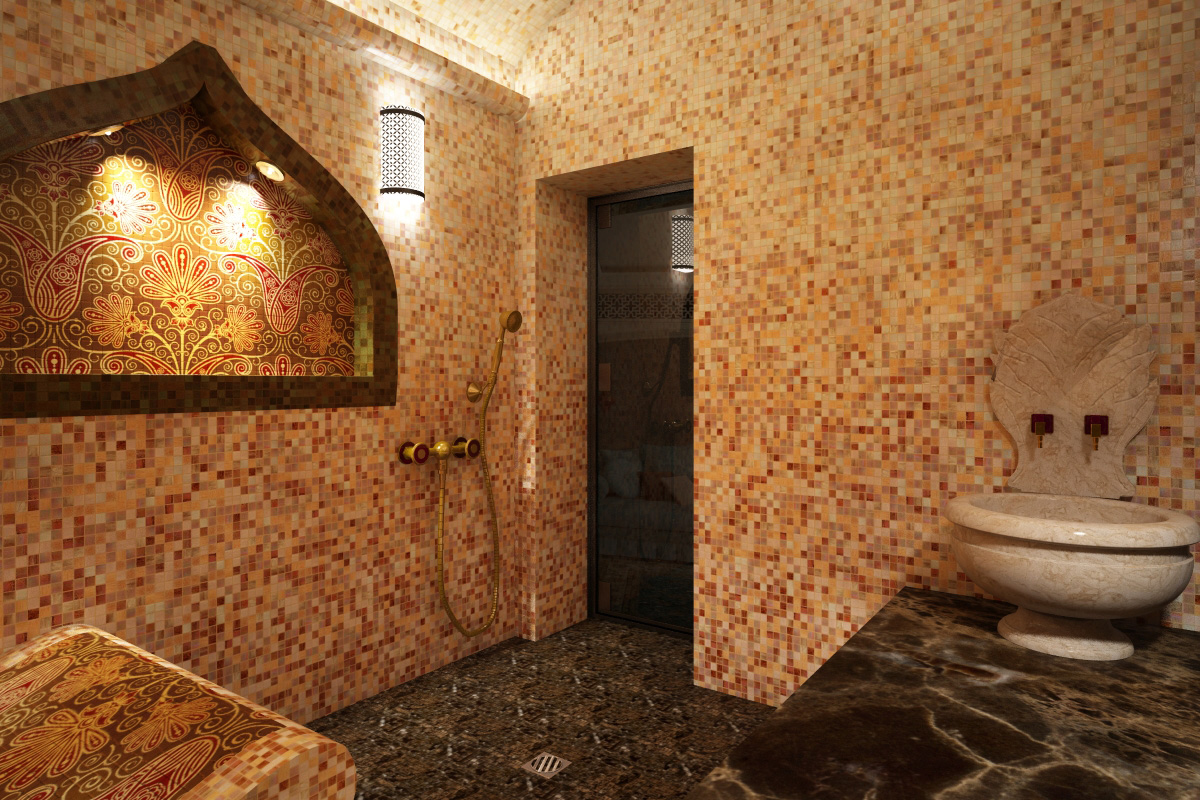 Prototypen von bekannten Hamams in privaten Bereichen werden zur Norm in der globalen Praxis des Aufbaus von privaten Bädern. Gegenüber dem Badzimmer ist der letzte Schliff der Konstruktion, aber es kann als das wichtigste angesehen werden, da jedes Bad ein kleines Kunstwerk ist.