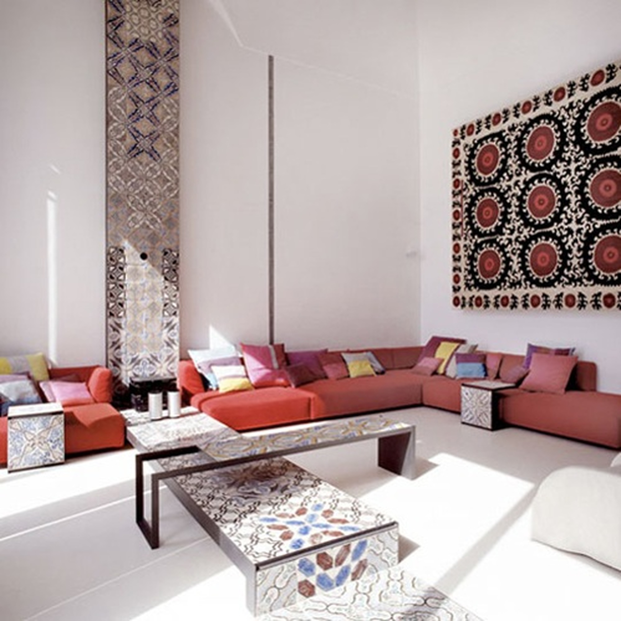 Wenn die türkische Mosaikfliese ein helles Farbschema hat, in dem helle Quadrate und Dreiecke mit satten Farben verziert sind, dann zeichnet sich das marokkanische Mosaik durch Pastellfarben und Ornamente aus, die persischen Teppichen ähneln.