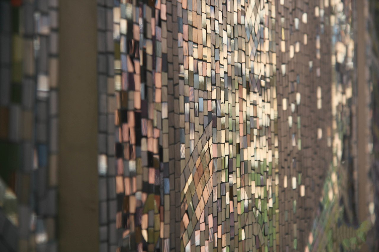 Man kann nachvollziehen, wie die Beherrschung der Leuchten der Mosaikkreativität perfektioniert wurde: von einfachen Steinmustern bis hin zu voluminösen bunten Tafeln, die Bildtechniken und Materialien vereinen.