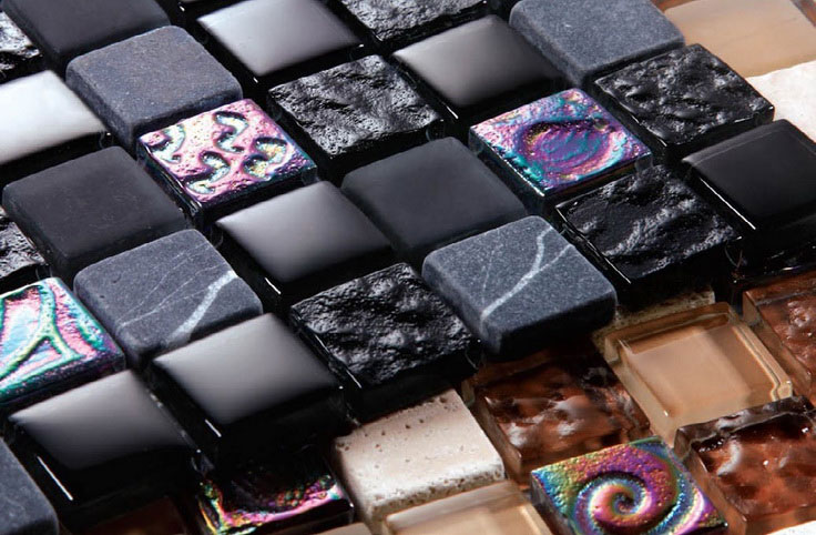 Die am häufigsten verwendeten Mosaikarten sind die Art des Materials, das für die Fragmente verwendet wird: