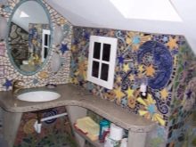 - Fugenglasmosaik ist besser, eine farblose Zusammensetzung zu machen, deren Farbe sich nicht gegen den allgemeinen Hintergrund abhebt. Dies gibt der Beschichtung Integrität.