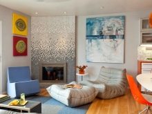 In manchen Fällen sehen Kontrastfarben wie Schwarz oder Rot gut aus. Es sollte angemerkt werden, dass die Verwendung satter Farben eine bestimmte Kombination mit der Gestaltung des Raumes erfordert. Andernfalls wird die Beschichtung visuell in Fragmente zerfallen.