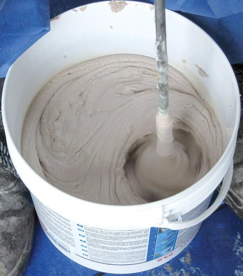 - Mischmittel müssen streng in bestimmten Verhältnissen sein.indem Sie die Anweisungen des Herstellers befolgen. In der Regel zeigen sie alle wichtigen Aspekte des Arbeitens mit Fugenmörtel an: die Fugenbreite, Vorbereitung, Anwendung. Um eine homogene Masse zu erreichen, können Sie einen Bohrer verwenden, indem Sie eine spezielle Düse auf dem Bohrer zum Kneten verwenden.