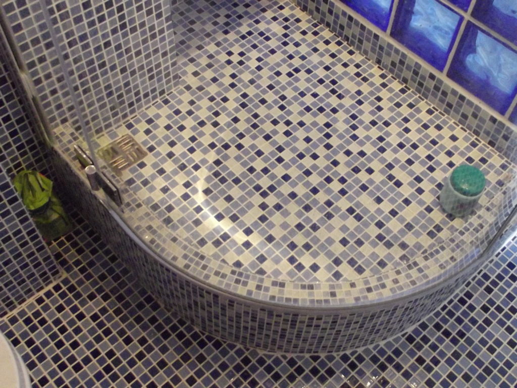 - Es ist besser, das Mosaik mehrmals zu waschen und Pausen zum Trocknen zu machen. Saure Reiniger können verwendet werden, aber sie sollten auch mit Wasser gespült werden.