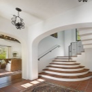 Besonders schön ist die Kombination von dunklen und hellen Fliesen. Die Marmoreinsätze auf der Veranda der Treppe werden spektakulär und auffällig sein, aber sanftere Töne und einfache Lösungen werden im Raum angebracht sein.