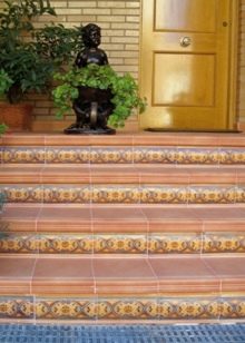 - Das Erscheinungsbild der Fliese muss im Stil des Innenraums des Raums oder des Äußeren des Standorts, auf dem sich die Stufen befinden, beibehalten werden.