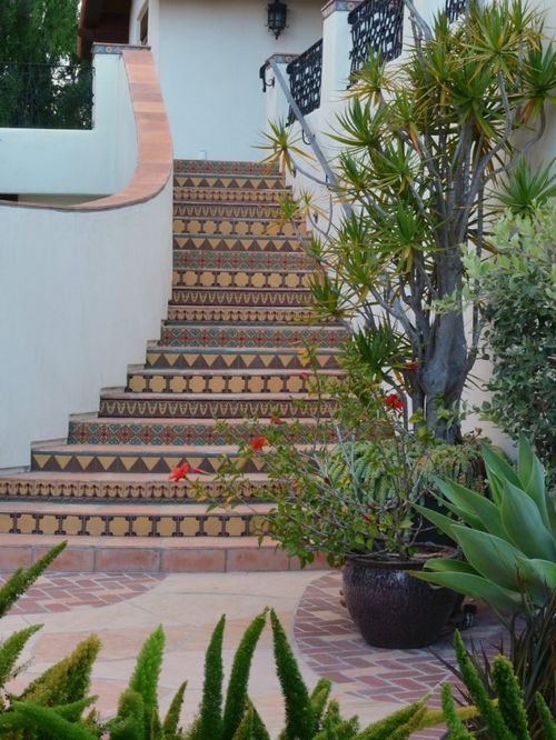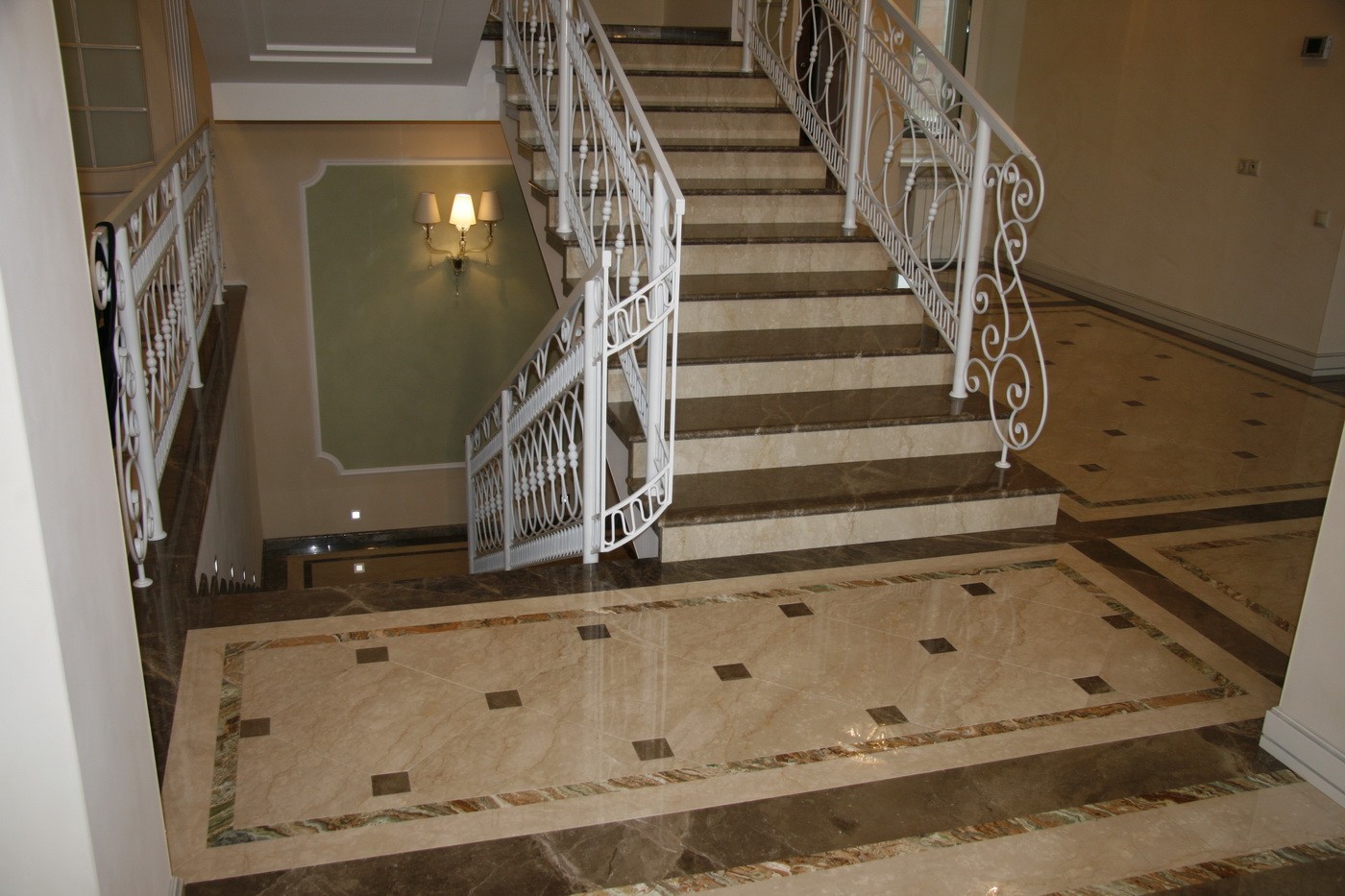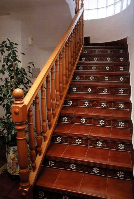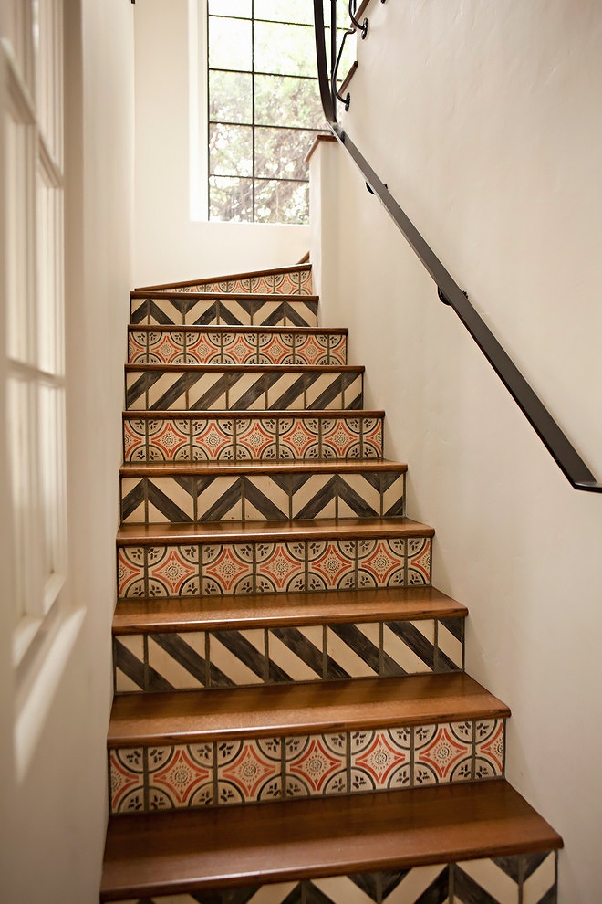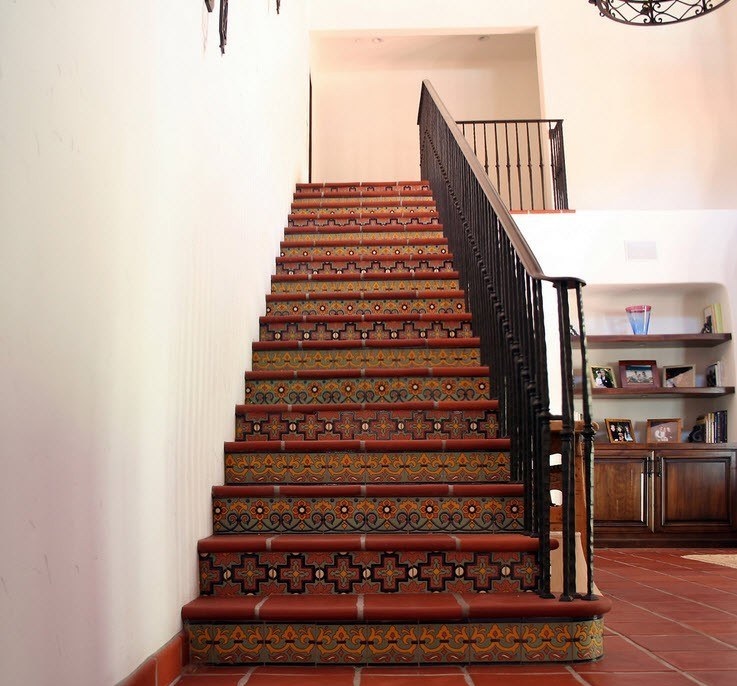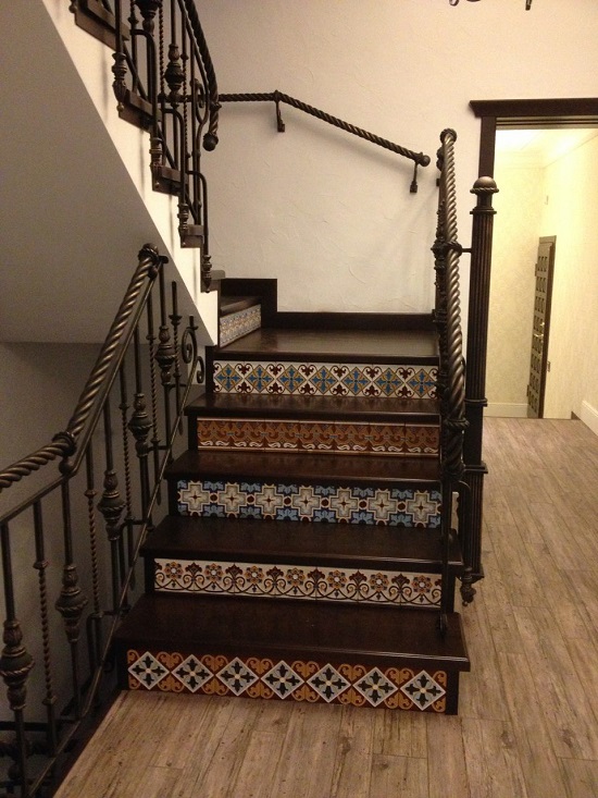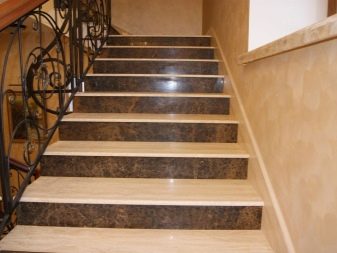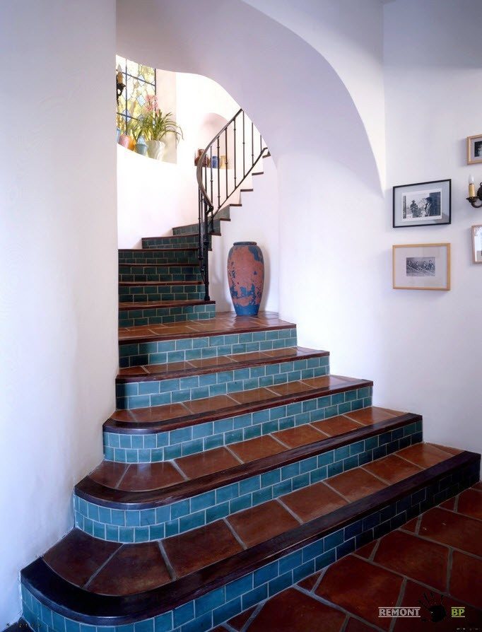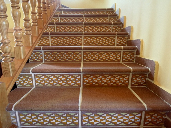 Oft gibt es Kombinationen von Fliesen in verschiedenen Farben, aufgrund derer die Treppen schön und elegant sind.