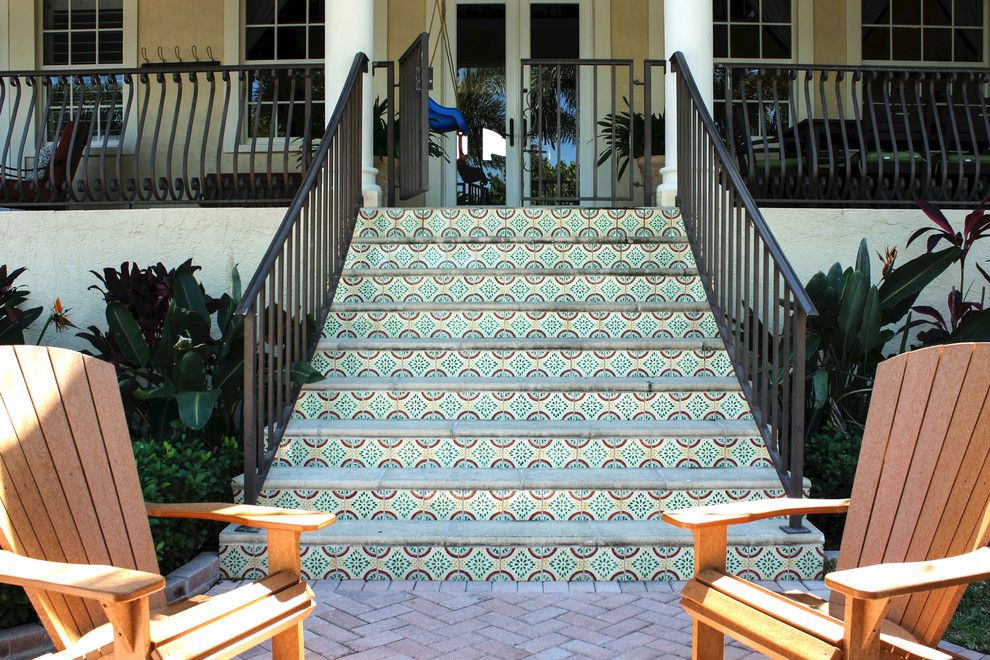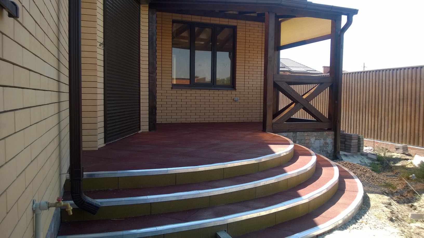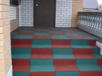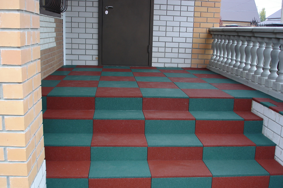 Die Verwendung von Gummikacheln eröffnet eine breite Palette von Gestaltungsmöglichkeiten, da ihre Palette mit allen Arten von Farben gefüllt ist.Die Wahl einer bestimmten Farbe hängt von den Wünschen des Kunden ab. Es sollte berücksichtigt werden, dass Das Erscheinungsbild der Struktur sollte harmonisch in das gesamte Innere oder Äußere des Hauses passen, abhängig von der Lage der Treppe.