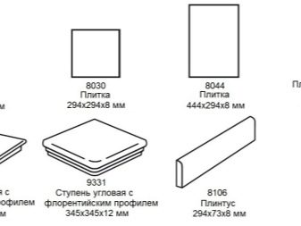 - Kachel für Schwenkschritte ist in jeder Kollektion vorhanden und erleichtert die Fertigstellung der Laufflächen. Beim Kauf eines Fertigfliesensatzes ist es notwendig, die Materialmenge sorgfältig zu berechnen, da es äußerst schwierig ist, eine solche Fliese separat zu finden.