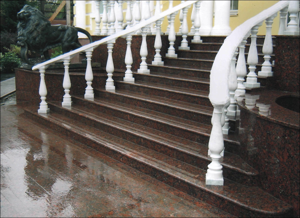 Für echte Ästheten bieten Hersteller eine so elegante Version des Treppendesigns, wie Granitfliesen. Seine Vorteile sind ausgezeichnete Leistung, Zuverlässigkeit und Haltbarkeit. Es verblasst nicht und wird nicht gelöscht. Darüber hinaus wird die Palette der Keramik aus Granit in einer Vielzahl von Farben präsentiert.