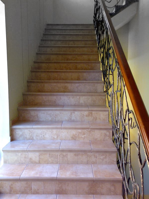 - Bei der Wahl einer Treppenfliese sollte man sich mit dem Abrasionsgrad vertraut machen - er sollte hoch sein. Traditionell werden Fliesen der 3. Kategorie verwendet, um die Innentreppe fertig zu stellen, und um den Außenstrukturen zu begegnen, ist es besser, Produkte der 4. Kategorie zu verwenden.