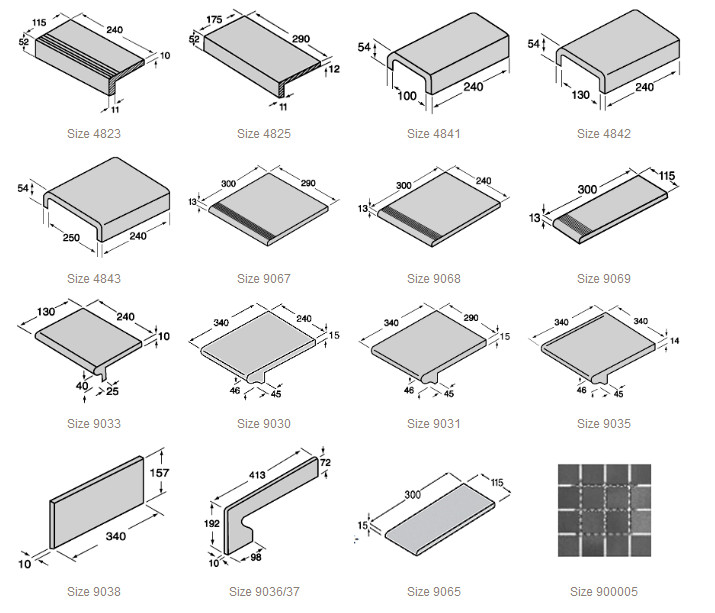 - Tread oder Fliese mit Capinos. Diese Art von Keramik ist eine Lauffläche mit abgerundeten Kanten. Fast alle Modelle sind mit Anti-Rutsch-Material überzogen: Schnitte, Rillen, Kerben können auf der Oberfläche der Fliese sein. Die Form der Produkte kann unterschiedlich sein: Sie können Fliesen für gerundete, gerade und geradzahlige Stufen zum Verkauf finden.