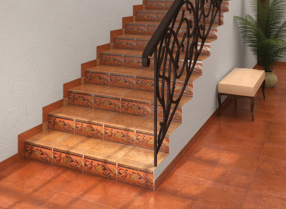- Riser - extrem wichtiger Teil beim Treppenstufen. Dies ist eine spezielle Art von Fliesen, die nur den vorderen Teil der Stufen bedeckt. Normalerweise gehen sie in die Sammlung einer Sammlung von Treppenfliesen, aber bei Bedarf können sie unabhängig voneinander hergestellt werden.