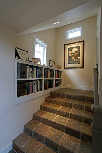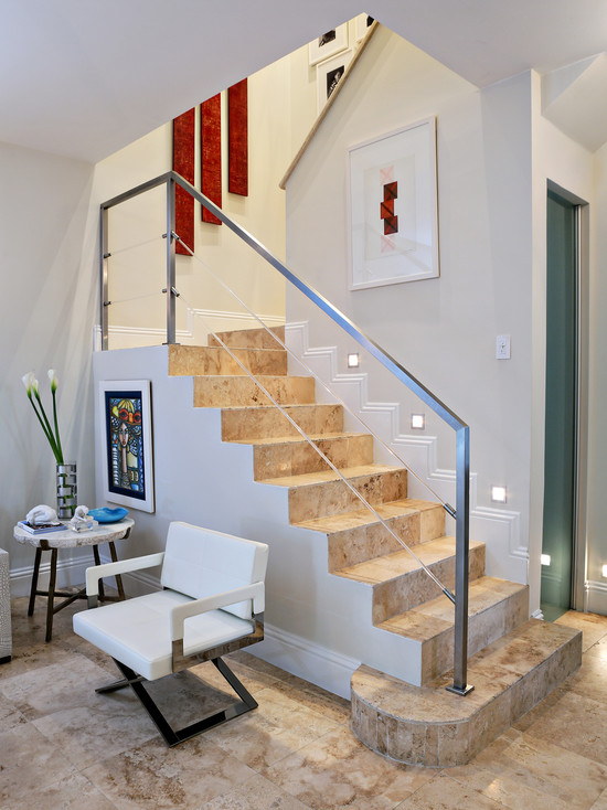 Die Verwendung von modernen Fliesen wird eine schöne und praktische Treppe schaffen, die zu einem echten Schmuckstück des Interieurs wird.
