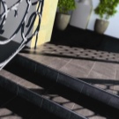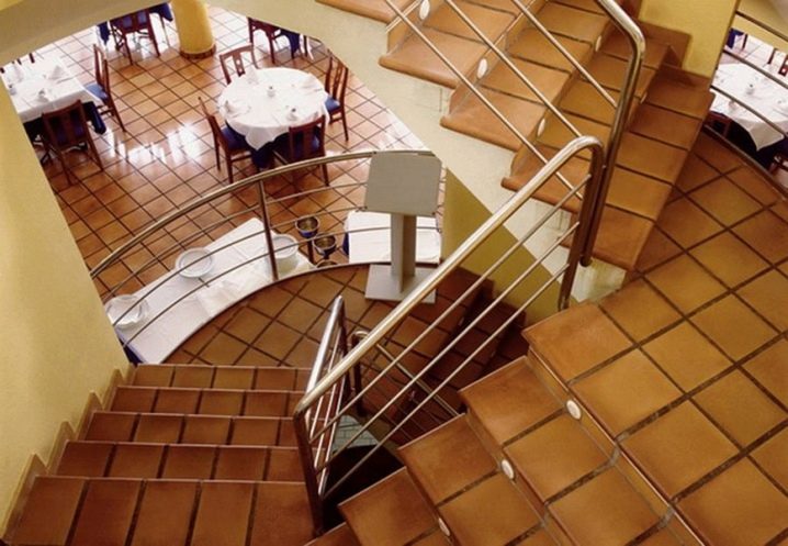 Um das Ensemble zu vervollständigen, werden Produkte hergestellt, um den Bodenbelag entsprechend der Treppe zu decken. Dies macht es möglich, einen einzigen Stil zu verwenden, um ein Interieur in Privathäusern, auf offenen Terrassen und auf der Straße zu schaffen.