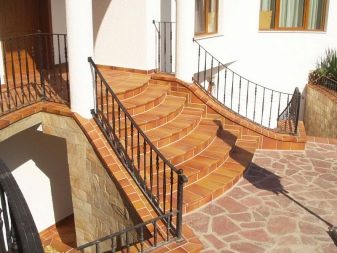 Fans solcher Produkte geben eine positive Eigenschaft, die fast keine Zuckerglasur ist. Selbst wenn es regnet und die Temperatur stark abfällt, wird kein Frost auf den Klinkerstufen auftreten, so dass das Geländer auf der Veranda nicht zur Sicherheit erforderlich ist. Sie können nur eine dekorative Funktion tragen oder ganz fehlen.
