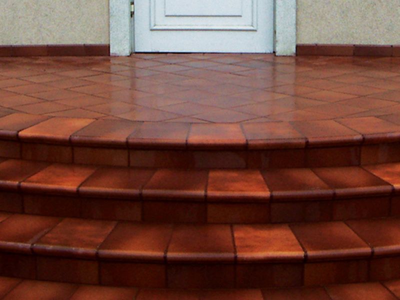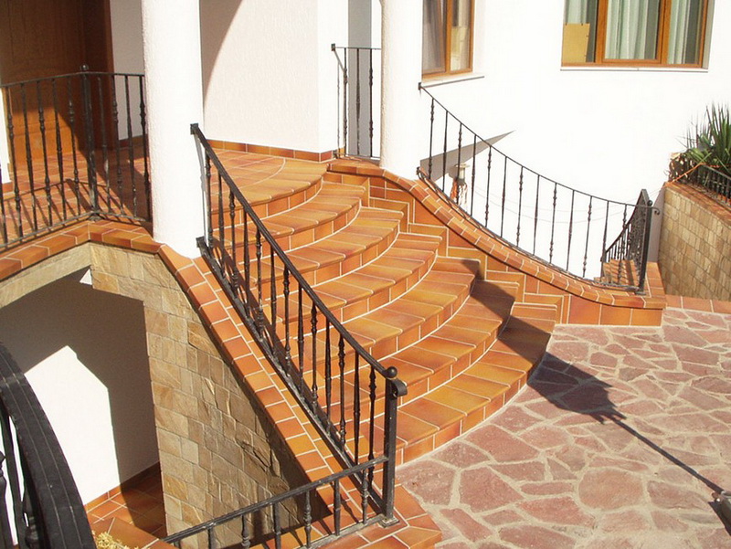 Wie die Praxis zeigt, zeigen sich Klinkerfliesen in solchen Situationen gut. und kann bis zu dreihundert ähnliche Zyklen ohne Qualitätsverlust durchlaufen.Aus diesem Grund ist das oben beschriebene Merkmal speziell für Treppen relevant, da die Bereiche zwischen den Stufen und darunter einer sehr großen Belastung ausgesetzt sind. Das Einfrieren von Feuchtigkeit mit dem anschließenden Schmelzen ist mit der Bildung kleiner Defekte auf der Oberfläche behaftet, die weiter zur Zerstörung der gesamten Struktur führen.