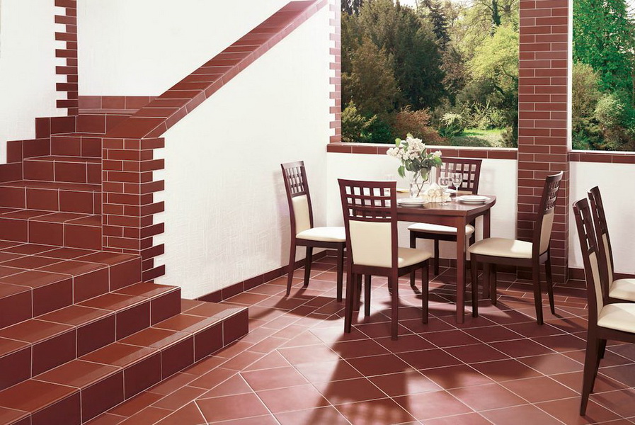 Ein solches Produkt wird erfolgreich im Innen- und Außenbereich eingesetzt. Käufer bemerken eine große Auswahl an verschiedenen geometrischen Formen von Fliesen, sowie eine Besonderheit des Materials - die Fähigkeit, Feuchtigkeit zu absorbieren. Zu den Vorteilen des Produkts zählen die Beständigkeit der mit Klinkerfliesen, Alkali und Benzin ausgekleideten Oberfläche - sie hinterlassen auf den Stufen keine Flecken.