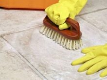 - Der Fugenmörtel wird mit einer elastischen Gummikelle (er sollte sich nicht unter Druck biegen) durchgeführt und gegebenenfalls mit den Fingern eingestellt. Wenn Sie nach 3-4 Stunden Löcher oder Hohlräume in den Nähten sehen, tragen Sie Gummihandschuhe und "modifizieren" Sie die verlorenen.
