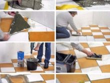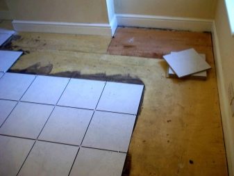 Jeder Holzboden ist vielschichtig, so dass sich die Meister mit verschiedenen "Schichten" auseinandersetzen müssen.Aber die Wahl der keramischen Verlegetechnik hängt nicht davon ab, ob Sie nur Lags, Spanplattenböden oder hochwertige Dielen geerbt haben. Der Prozess des Fliesenlegens wird immer gemäß dem Standardalgorithmus durchgeführt, und es gibt Unterschiede nur in der Vorbereitung.