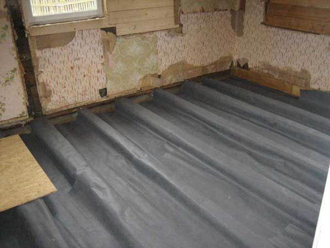 - Wir decken die imprägnierten Materialien ab.Als Abdichtung können Sie dickes Polyethylen, Bitumenpapier, Glassine, Paraffinpapier verwenden. Dämmrollen mit Überlappungen und Seiten ausrollen, mit Konstruktionsband befestigen.