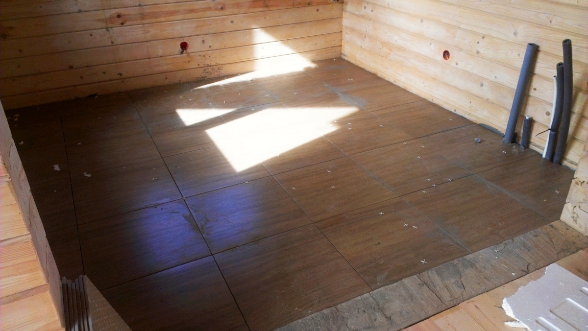 - Das Verlegen von Fliesen auf einem Baum im neuen Haus ist strengstens verboten. Innerhalb von 2-3 Jahren wird das Gebäude schrumpfen und die Böden werden sich bewegen.