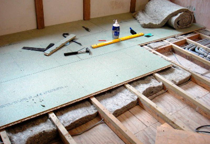 In der Regel gibt es bereits eine Art Isolierung zwischen den Verzögerungen im Holzboden. Dies kann ein ganz anderes Material sein - Ton, Sägemehl, Blähton. Es ist nötig es nicht zu entfernen - installieren Sie den Kuppler auf den Wärme- und schalldämmenden Materialien. Wenn es nichts gibt, dann setzen Sie ein neues Isolationslicht in Gewicht, zum Beispiel Schaumkunststoff oder Mineralwolle. Diese Materialien belasten Holzkonstruktionen nicht stark.