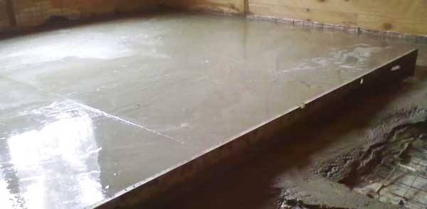 - Füllen Sie den Estrich mit gebrauchsfertigem Fertigmörtel oder selbst gemachtem Mörtel (flüssiges Glas (2 Teile) und sauberer grober Sand (2 Teile) werden verwendet). Hausgemachte Mischung muss mit sauberem Wasser (Teil 1) geschlossen werden.