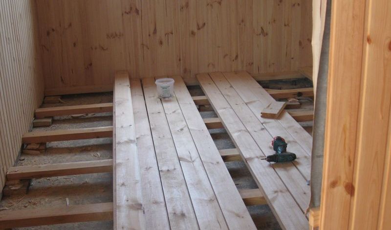 Die Vorbereitung der Basis besteht in den meisten Fällen darin, sie zu nivellieren. In einigen Fällen ist es notwendig, einige Holzelemente, wie zum Beispiel Lags, durch ähnliche zu ersetzen. Das Hauptprinzip der Arbeit mit der Basis ist, zu verhindern, dass der Holzschornstein den Fliesenboden durch Bewegungen und Temperaturänderungen zerstört.