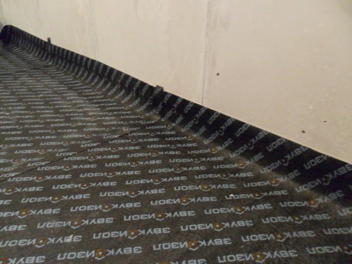 - Entlang des Umfangs der Wände zwischen den Seiten legen wir ein Dämpfungsband, das nicht weniger als 10 Zentimeter breit und ungefähr einen Zentimeter dick ist.