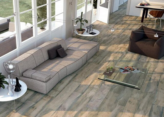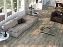 Fliesen unter der Diele kombinieren viele verschiedene Vorteile. Bodenfliesen werden von in- und ausländischen Unternehmen mit modernen Technologien hergestellt. Dadurch hat der Verbraucher die Möglichkeit, hochwertige Waren ohne Kalibrierung zu kaufen. Auf dem Baustoffmarkt sind solche Fliesen durch eine große Auswahl an Größengruppen vertreten. Falls nötig, können Sie zur Verkleidung Fragmente unterschiedlicher Texturen aufnehmen, um das ursprüngliche Muster zu erhalten. Wir notieren die Haupteigenschaften von Bodenfliesen unter der Diele.
