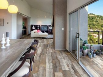 Häufig wird ein solches Abschlussmaterial auf dem Boden mit der Bodenplatte kombiniert, um einen Zonenraum zu schaffen. Dies gilt insbesondere für Einzimmer-Studio-Apartments, in denen die Küche und der Essbereich gefliest sind, und das Schlafzimmer - mit Parkett oder Laminat.