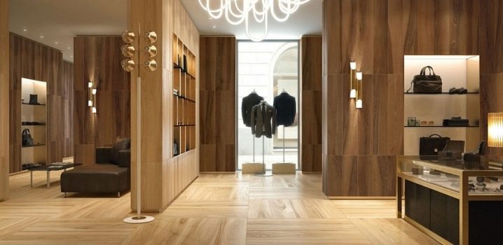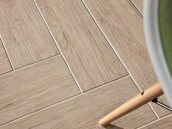 Die Ähnlichkeit mit dem Baum wird erreicht, indem dem Ton eine besondere Textur verliehen wird (durch spezielle Geräte und Färbung). Solches Material imitiert perfekt die Farbe von Holz: in der Palette gibt es viele Schattierungen von braun, rot, grau und sogar fast schwarz. Durch Relief können sie mit Eiche, Kiefer, Walnuss oder Birke verwechselt werden (besonders wenn die Fliesenoberfläche matt ist). Besonders beliebt sind helle Farben, mit denen kleine Küchen dekoriert werden. Solche Fliesen unterscheiden sich neben Farbe und Struktur auch in der Form: Sie sind länglicher (rechteckiger) als normales Fliesenmaterial, sie haben ihre eigenen Standardmaße und -formen.