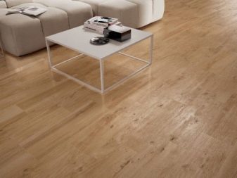 Die Festigkeitseigenschaften von Porzellan und Keramikfliesen sind höher als die von Naturholz und Linoleum. Selbst die Waren der höchsten Klasse können nicht mit dem in Betracht gezogenen Ausrüstungsmaterial verglichen werden. Sie werden keine Delle auf dem Boden hinterlassen können, auch wenn schwere Möbel auf der Oberfläche sind. Halten Sie einen solchen Boden und fallen Sie Geschirr, aber je schwerer das Motiv, desto wahrscheinlicher die Bildung von Kratzern.
