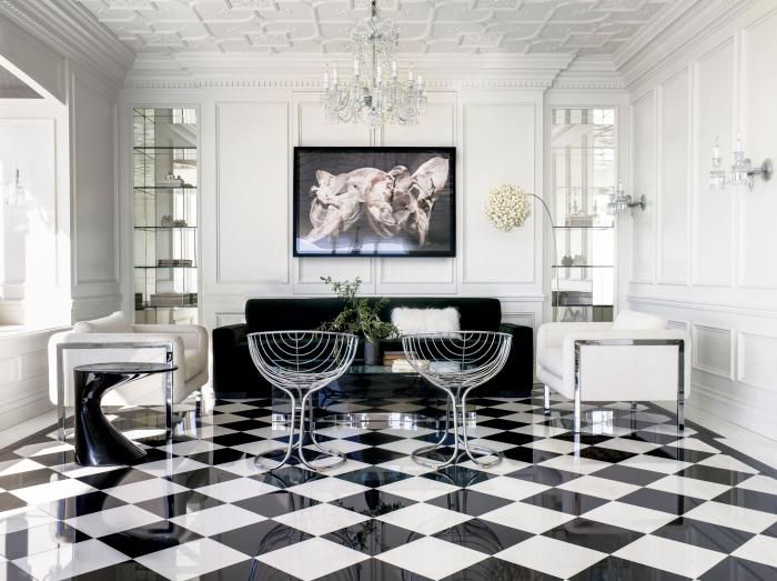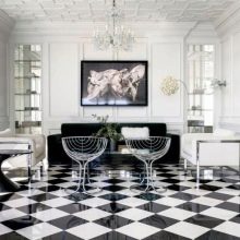Diese Fliese behält ihre Gebrauchseigenschaften vollständig bei, verliert aber gleichzeitig ihr Volumen und verliert an äußerer Originalität, obwohl sie in einigen Innenräumen relevanter ist. Häufiger als andere Optionen wird es verwendet, wenn Böden in irgendwelchen Räumen gegenübergestellt werden.. Eine interessante Lösung ist ein schwarzes und weißes Paneel, das in allen Räumen einer Wohnung oder eines Hauses angewendet werden kann, da es den Raum optisch erweitert, eine angenehme Atmosphäre schafft und Originalität verleiht.