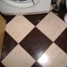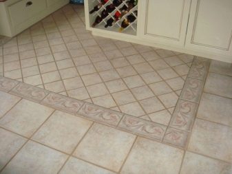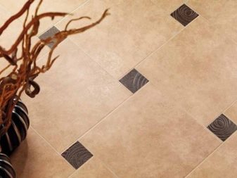 Quadratische Fliesen, die einfach in Diamanten passen, sind eine klassische Version. Es dient seit Jahrzehnten zur Dekoration der Räumlichkeiten und verliert nicht an Relevanz.