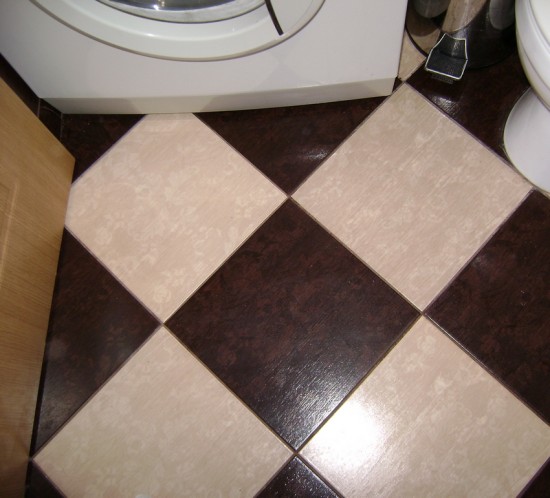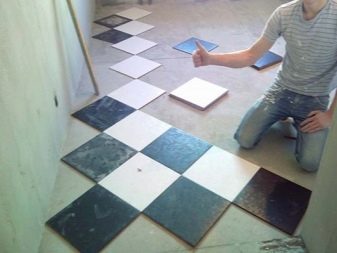 Wählen Sie beim Kauf die sogenannte kommerzielle Art von rautenförmigen Fliesen. Es ist langlebig und hat einen verbesserten Schutz vor Feuchtigkeit. Schnell trocknender Zementkleber ist ideal für eine solche Beschichtung, aber Sie können eine andere, geeignetere Option wählen.