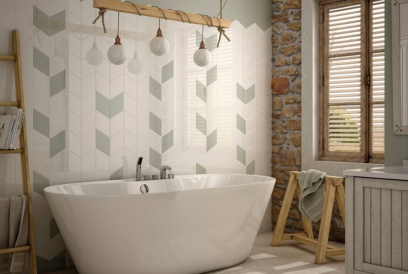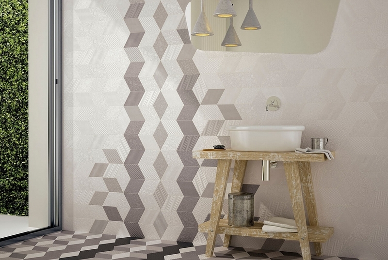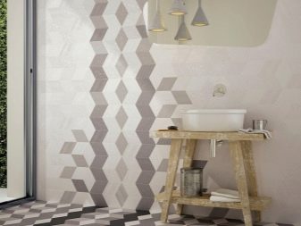 Es gibt viele Möglichkeiten für den Einsatz von Diamanten im Innenraum. Dies gilt auch für Keramikfliesen, mit denen Sie ein Mosaik aus kleinen Teilen erstellen können. Technisch gesehen ist dieser Prozess komplexer und erfordert daher die Hände eines wahren Meisters, aber die Ästhetik ist erstaunlich. Das Ergebnis ist ein Finish mit verschiedenen Mustern, die visuelle Effekte ergeben.