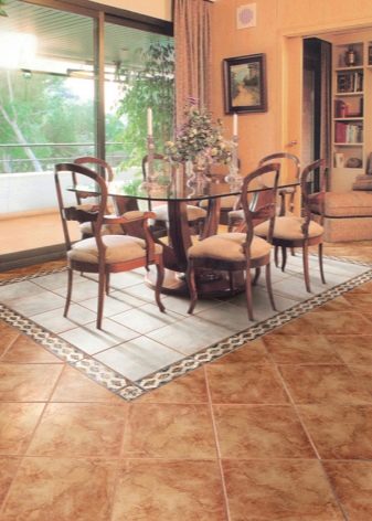 - Glatte rautenförmige Fliesen. Es wird hauptsächlich für die Verkleidung von Fußböden oder für verschiedene Stufen verwendet.