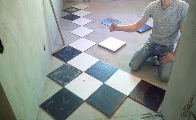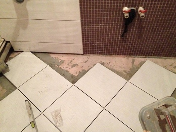 Versuchen Sie nun, den Fliesen-Diamanten auf dem Boden im Badezimmer zu platzieren, indem Sie folgende Empfehlungen befolgen: