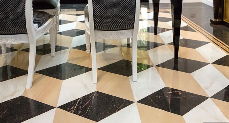 Bodenfliesen mit Rhombus: spektakuläre Innenraumlösungen