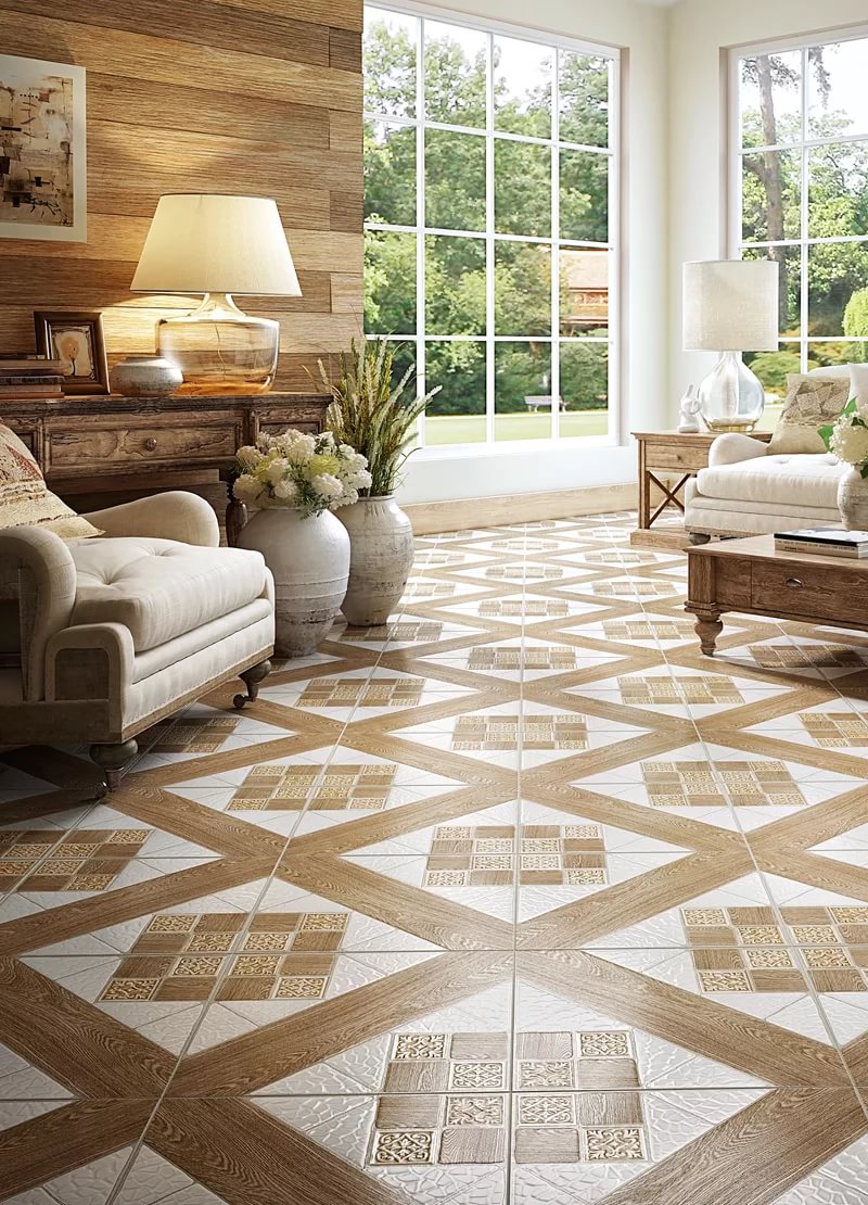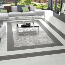 Heute ermöglichen es Technologien bei der Herstellung von Feinsteinzeugfliesen, Muster über die gesamte Oberfläche zu streichen und jedes digitale Muster darauf aufzubringen. Dies ermöglicht eine Vielzahl von Gestaltungsideen in die Realität umzusetzen. Wenn in den vergangenen Jahrzehnten die Muster auf der Fliese entweder "Schach" oder kleine Verzierung waren, sind die Bilder heutzutage mit Details und visuellen Effekten auffällig. Es ist eine Überlegung wert, wie man die Fliese auf dem Boden für verschiedene Räume wählt, um eine schöne Innenarchitektur zu schaffen und einem bestimmten Stil zu widerstehen.
