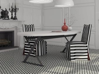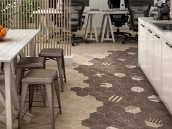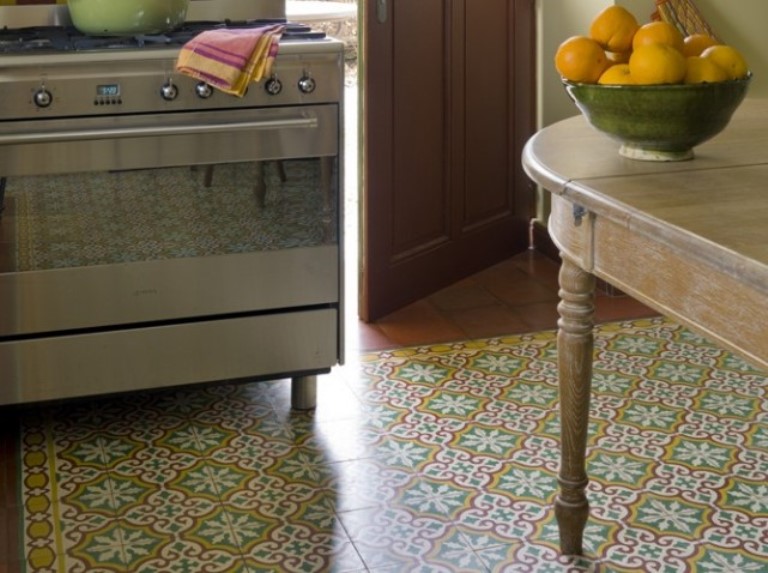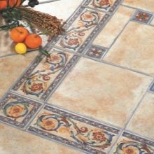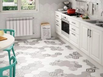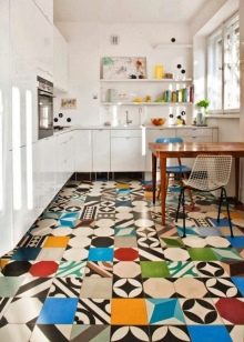 Bodenbelag mit einem Ornament für die Küche kann mit dem Retro-Stil gehen oder nur für diejenigen, die Komfort mehr als einen trendigen Stil zu schätzen wissen. Eine gute Lösung für eine Wohnung, in der ältere Menschen leben, die nichts ändern wollen. Dies ist auch eine gute Option für die Reparatur eines Landhauses. Es ist auch erwähnenswert, dass solche Fliesen ziemlich billig sind.