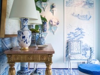 - Gemusterte Malerei unter dem Gzhel - das sind verzierte Zeichnungen von blauer Farbe.