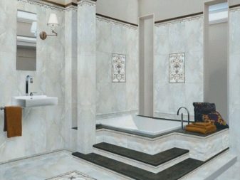 Bad in Marmor Design mit dekorativen Platten im antiken Stil. Facing schafft die Wirkung von Palast Luxus.