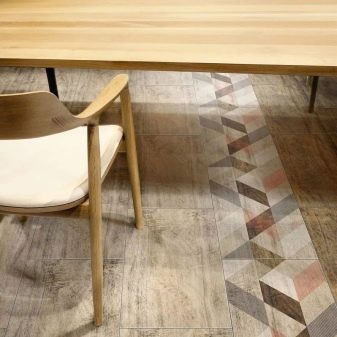 Um ein Interieur in einem rustikalen Stil zu schaffen, ist es am besten geeignet, gealtertes Holz zu imitieren. Wenn Sie im Vintage-Design bevorzugen, passen Fliesenmaterialien mit der Wirkung von Rost und der Oberfläche aus poliertem Stein.