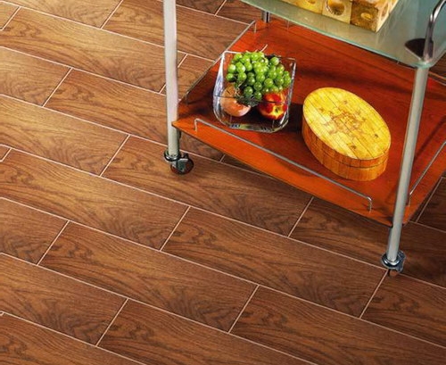 Dank des digitalen Designs sehen die Böden unter dem Parkett genauso aus wie poliertes Naturholz. Die Farbe der Fliese passt in den Kaffee- und Milchbereich.