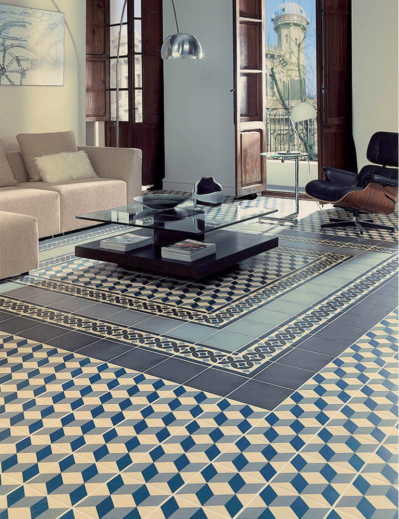 Bodenfliesen mit einem Muster in der Innenarchitektur